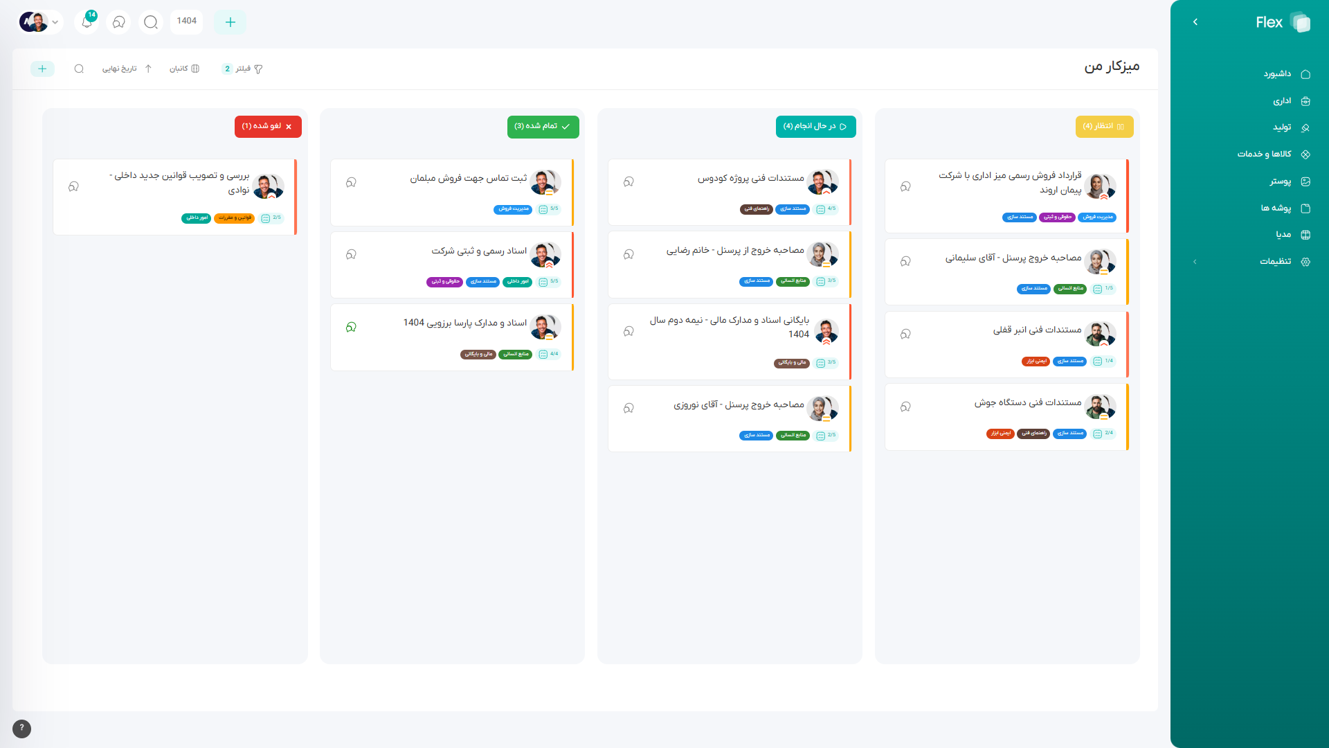 میزکار من در داشبورد نرمافزار فلکس به شما این امکان را میدهد که تمام رویدادهایی که به شما اختصاص داده شدهاند یا خودتان ایجاد کردهاید، بهصورت منظم و دستهبندی شده مشاهده کنید. این بخش بهویژه برای تسهیل مدیریت و پیگیری وضعیت رویدادهای مختلف در سیستم طراحی شده است. در این قسمت، تمامی رویدادها بهصورت یک لیست مرتب و قابل فیلتر نمایش داده میشوند و شما میتوانید به راحتی از آنها برای مدیریت کارهای روزانه استفاده کنید.