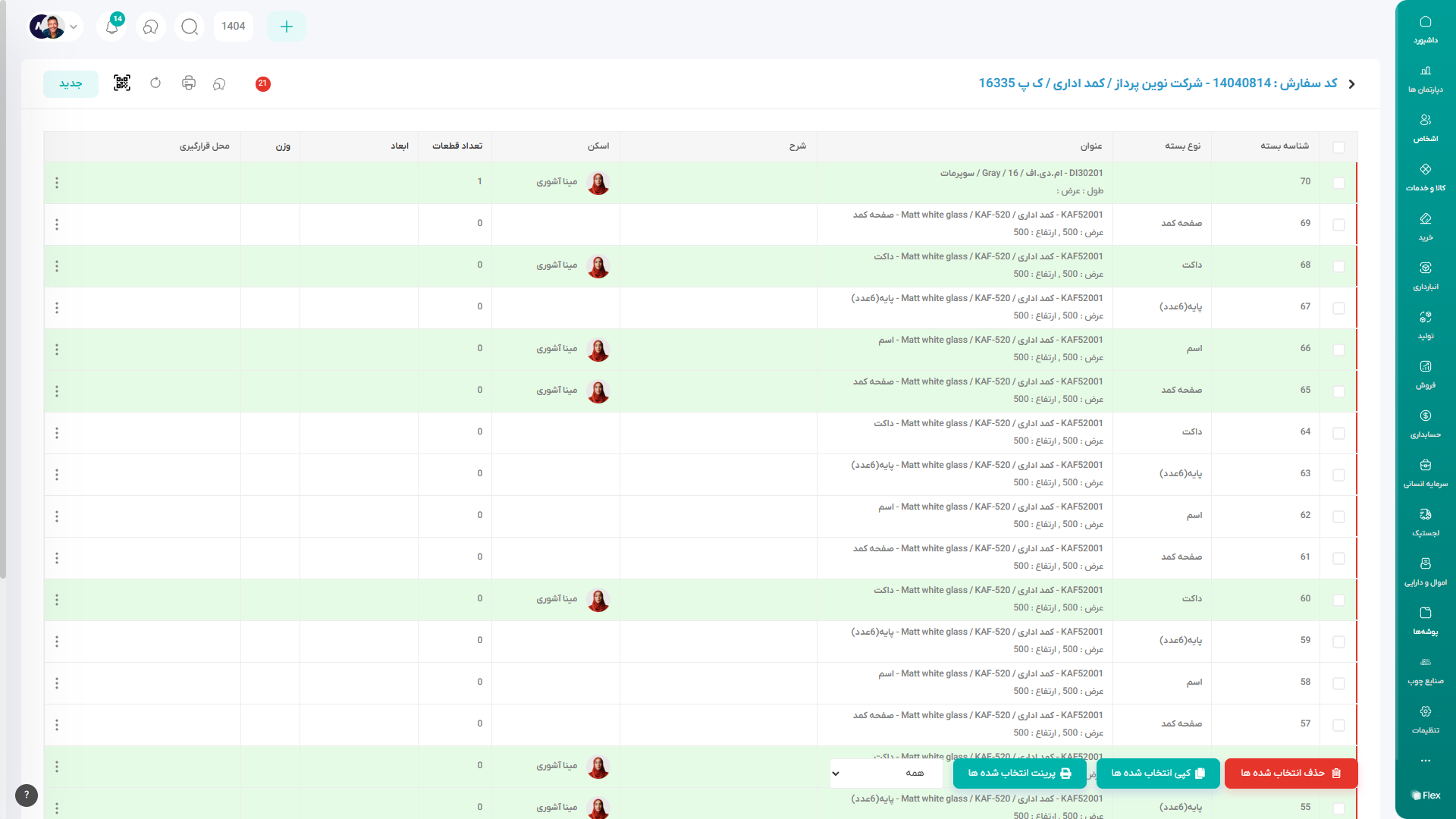 پس از کلیک روی شناسه یکی از سفارشات در لیست بارگیری وارد صفحه جزئیات آن بارگیری می شوید