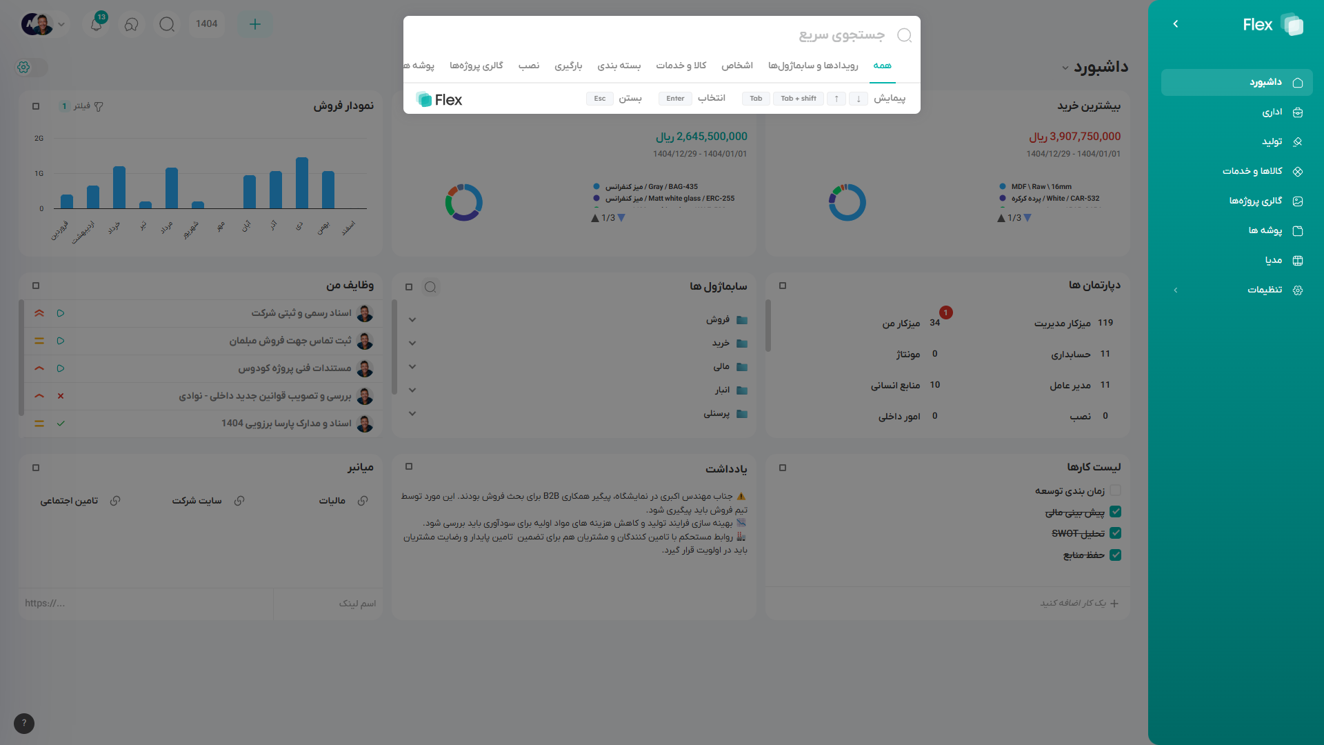 جستجوی سریع ابزاری ساده و هوشمند در فلکس است که به کاربران اجازه میدهد تا بدون نیاز به جابجایی در ساختار منوها، تنها با تایپ چند حرف به فرمها، صفحات تنظیمات و بخشهای مختلف برنامه دسترسی پیدا کنند.